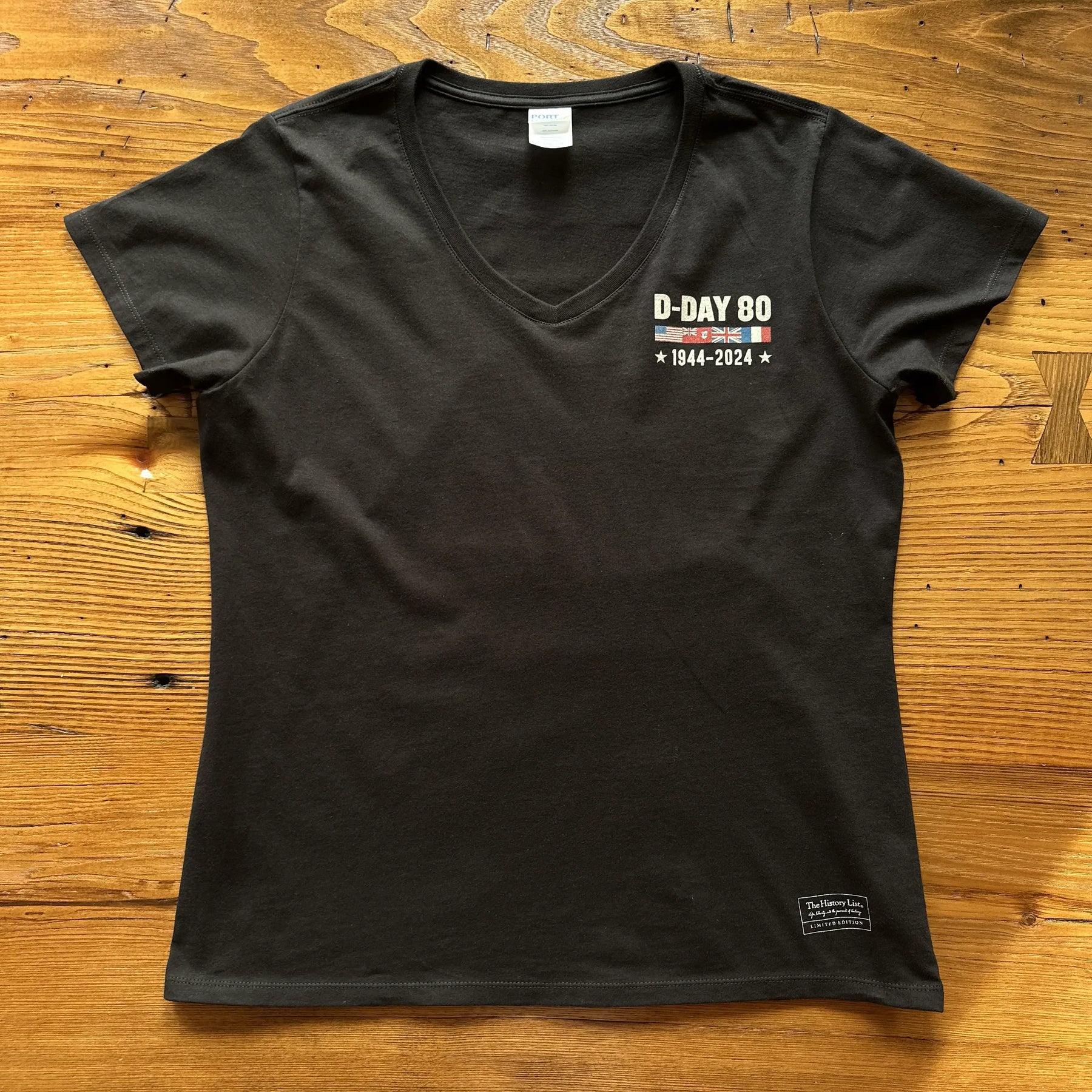 Over the left chest, "D-Day 80," the flags of the major allied nations involved in the landing, and the years 1944 - 2024.